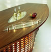 Elongated oval Honduran mahogany table with an extraordinary foot made up with over eight hundred small pieces of wood to give an elegant flowing form. In the centre a removable highly polished stainless steel plate conceals a bespoke technical compartment. When combined with the two extension Console Tables, the total length goes from 2.90 to 4.20 meters. If used as a private dining table, on the reverse side of the central metal piece, a plate warmer can be installed and a waterproof well can also be added so that bottles, flowers arrangements, floating candles or other decorations do not obscure diner guest.